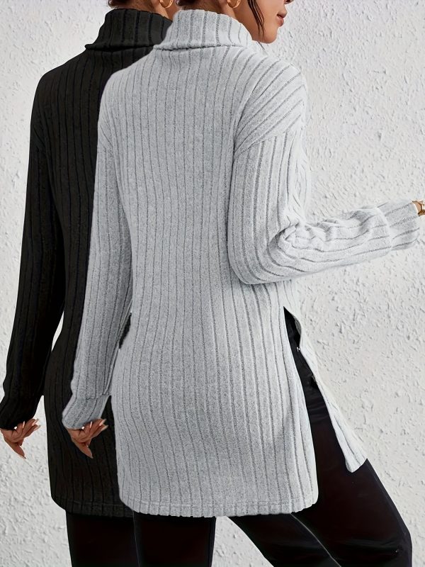 2pcs Ribbed Turtle Neck Plain T-shirt