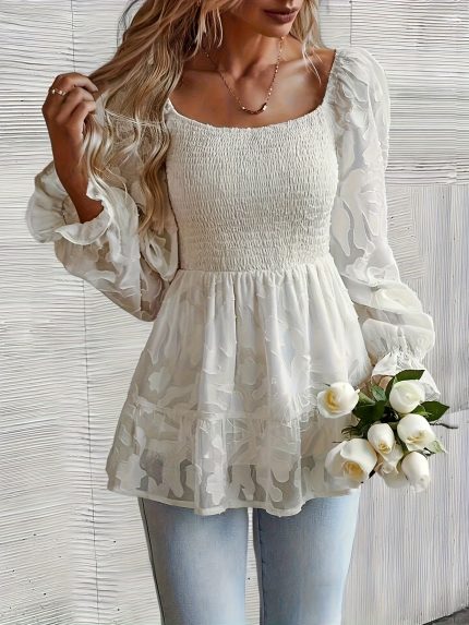 Elegant Pleated Trumpet Sleeve Ruffle Shirt