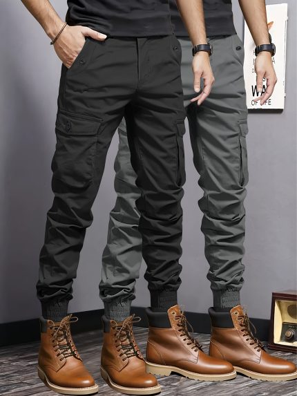 2pcs Fashion Casual Joggers with Multiple Pockets