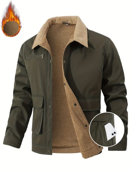 Men’S Casual Fleece-Lined Bomber Jacket with Multiple Pockets
