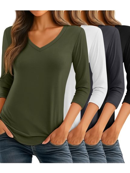 Four-Piece Women’s Sleeve V-Neck Casual Loose Spring Summer Fashion Seven-Eighth Sleeve T-Shirt Set