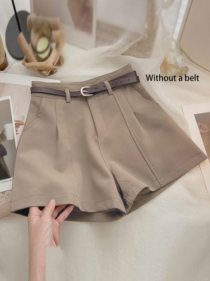Women’S Vintage A-Line Wide-Leg Shorts – 95% Elastane 5% Polyester, Machine Washable Casual Loose Fit, Solid Color Elegant Series for All Seasons, Comfortable Fashion|Vintage Style Shorts|Polyester Elastane Blend