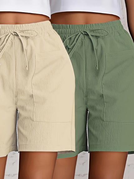 Women’s Elastic Waist Casual Shorts – Summer Lightweight Breathable Fabric with Faux Drawstring Detail, Solid Color, Machine Washable for Lounge, Outdoor & Casual Attire, Lounge Clothing, Relaxed Fit, Soft Material, Home Comfort