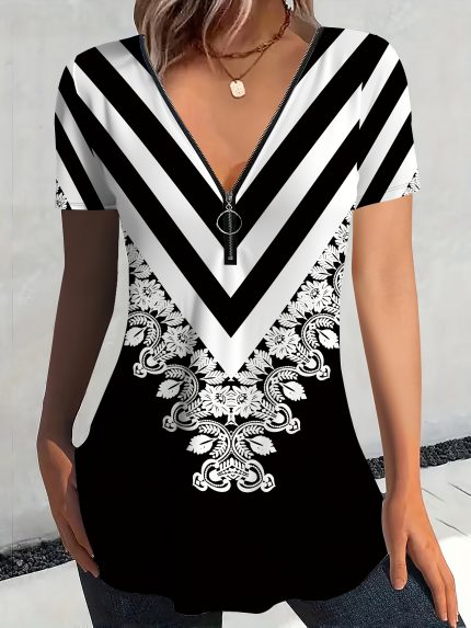 New Women’S Short-Sleeve T-Shirt with Zipper (Targeted Base Layer)