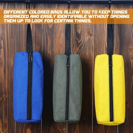 9-Pack Heavy-Duty Waterproof Canvas Tool Pouches with Zipper Closure – 9 Vibrant Colors (Pink, Green, Yellow, Orange, Red, Grey) | 9.8