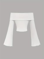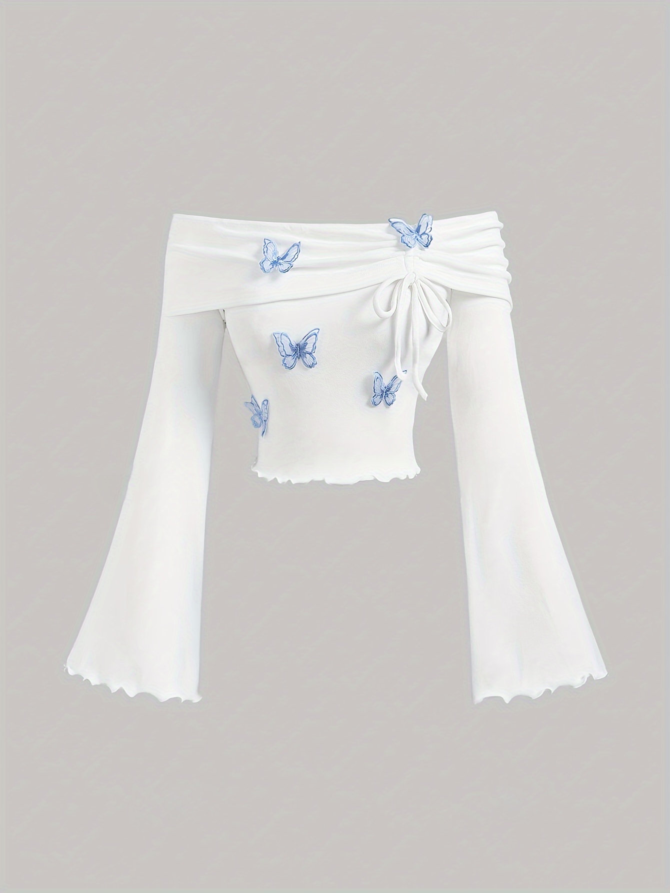 Be the first to review “1pc White Polyester Knit Off-Shoulder Flare Sleeve T-Shirt with Blue Butterfly Embellishments, Cute Ruffle Trim, Regular Length, All-Season Fashion Top” Cancel reply