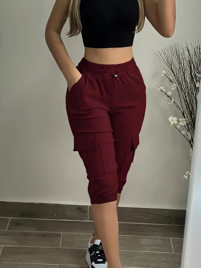 2025 Side Pocket Cargo Pants with Drawstring at The Waist, Cropped Length NS702