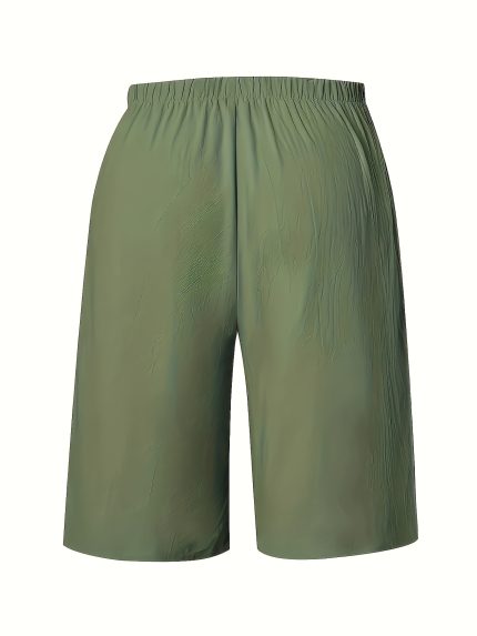 3pcs Women’s Elegant Solid Color Elastic Waist Pockets Mid-Length Casual Shorts – Breathable Summer Fabric, Machine Washable, Orangeu002FGreenu002FNavy, Casual Attire, Relaxed Fit Apparel, Smooth Texture