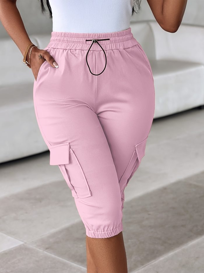 Home Women's Shorts 2025 Side Pocket Cargo Pants with Drawstring at The Waist, Cropped Length NS702