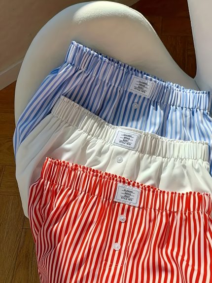 Elegant Striped Shorts 3-Pack Women’s Elastic Waist Shorts Set – Striped Checkered Solid Color, All-Season, Side Stripe Detail – 97% Polyester 3% Spandex, Woven Fabric, 150 gsm, Button Design