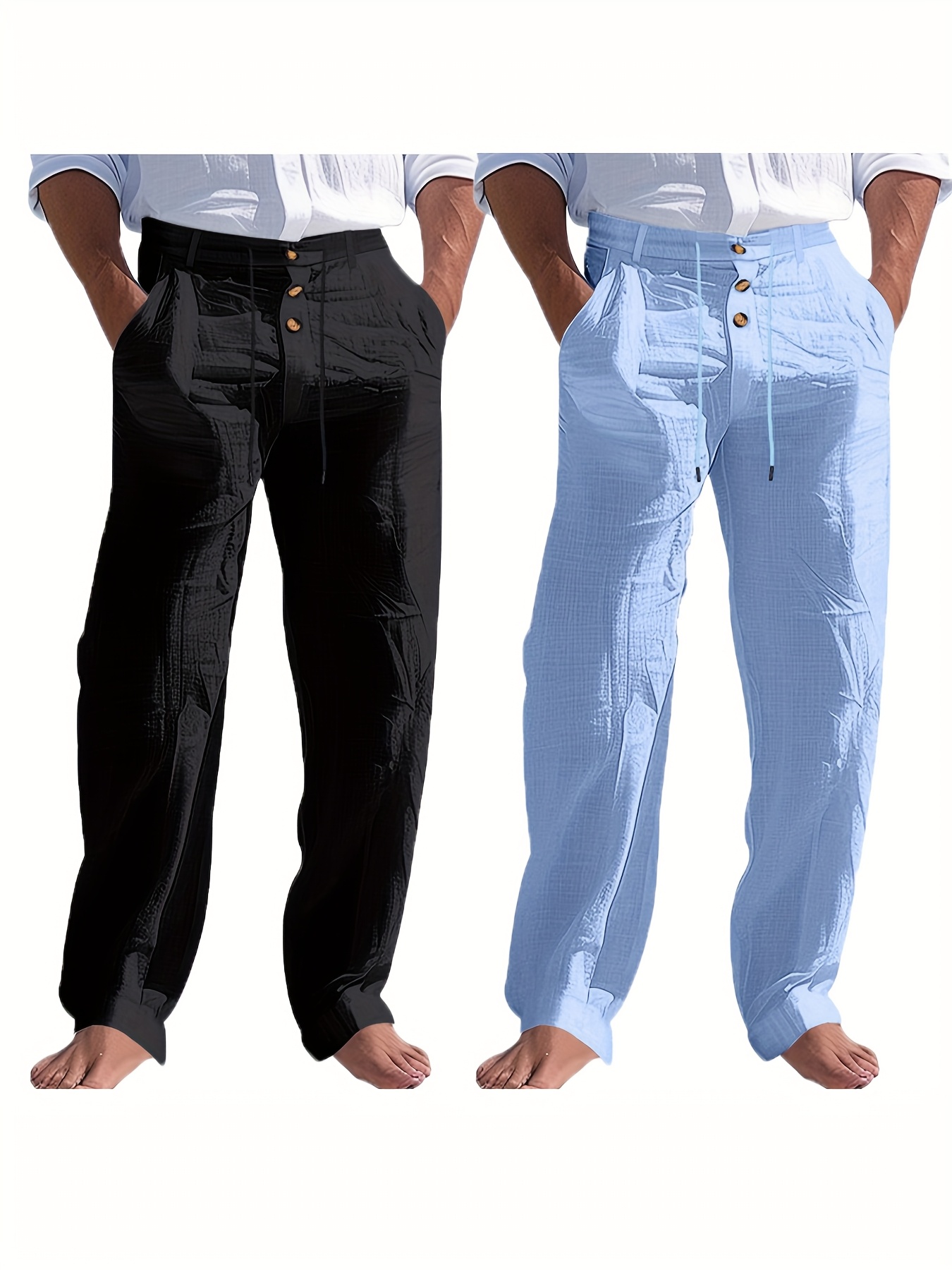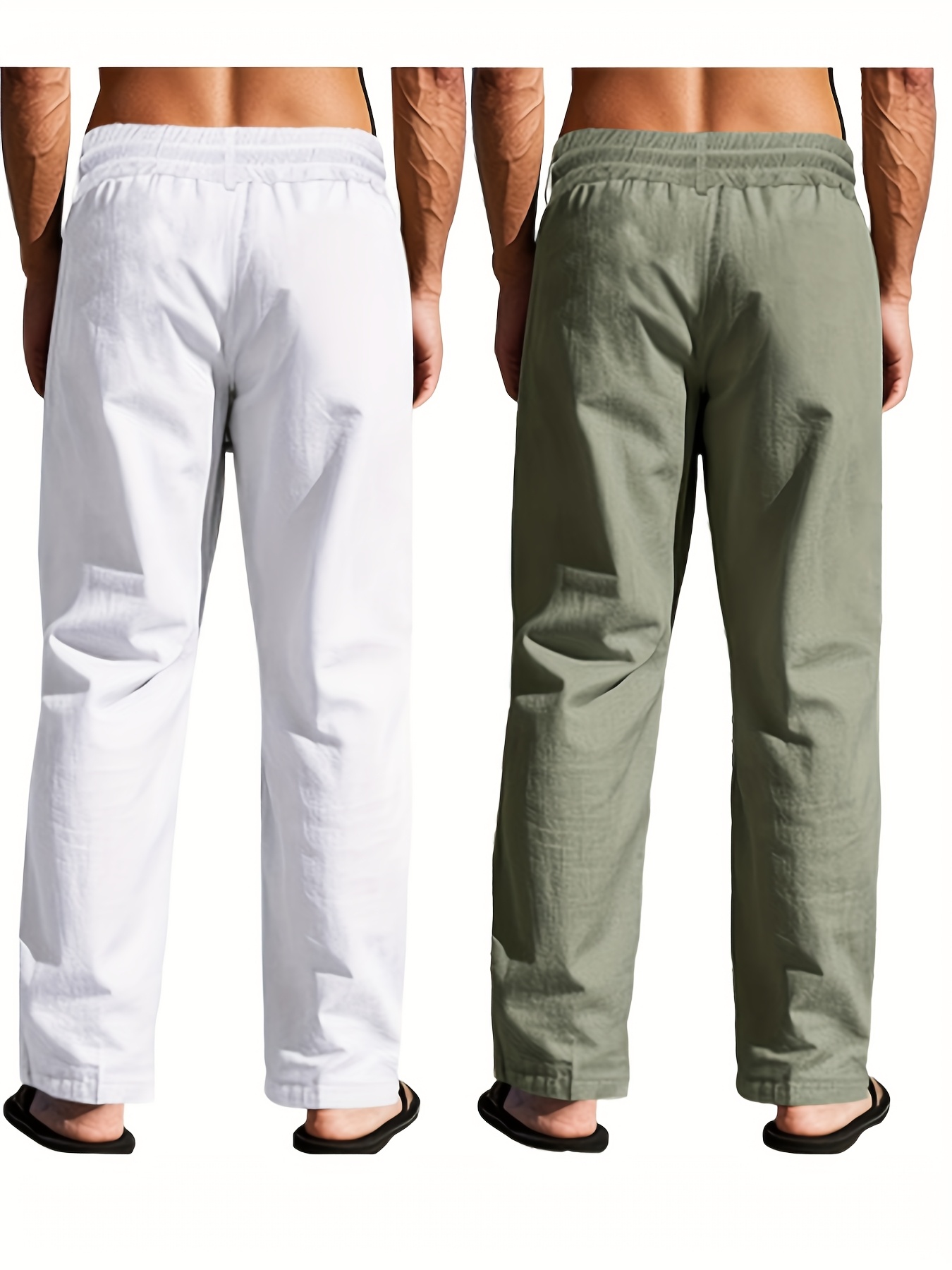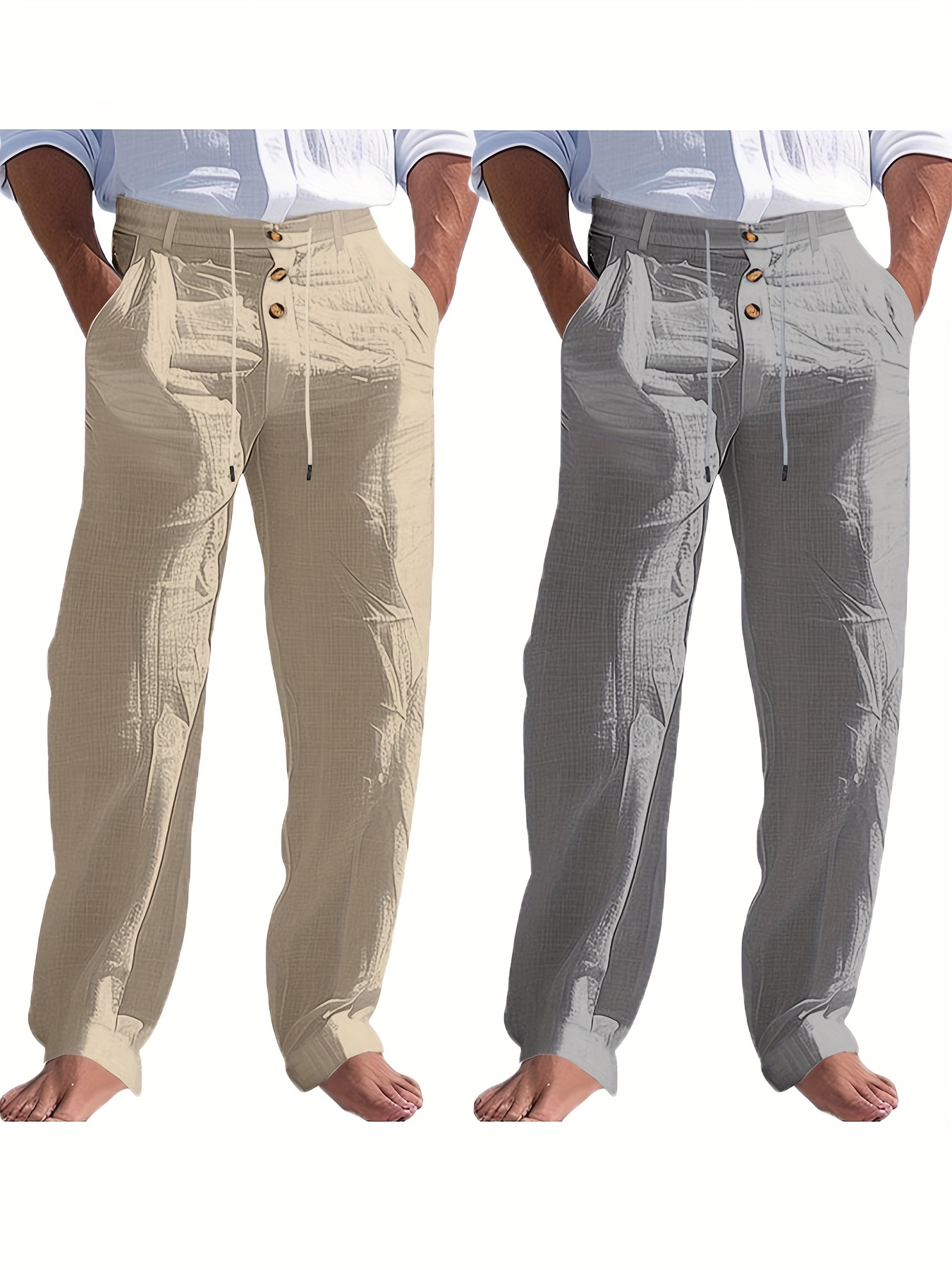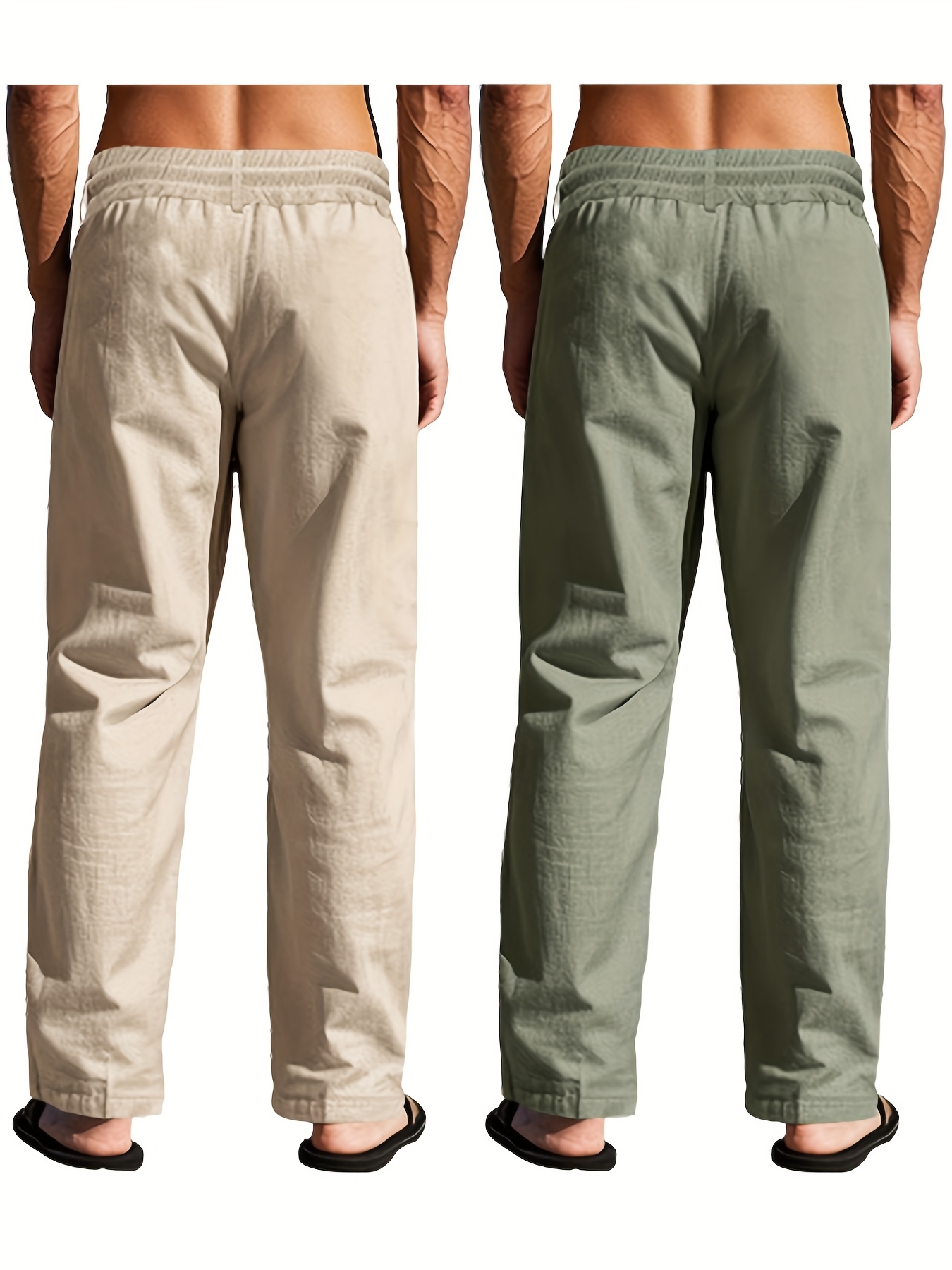 2pcs Men’s Lightweight Linen Casual Straight-Leg Pants