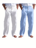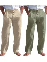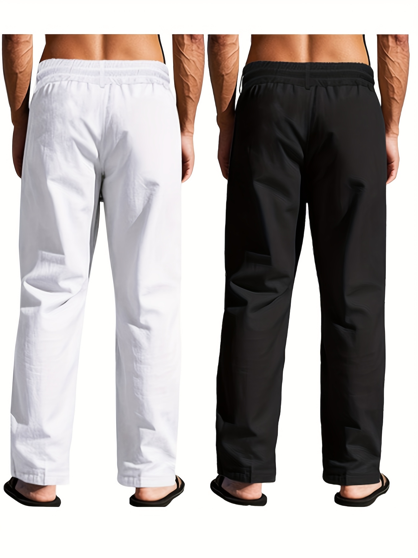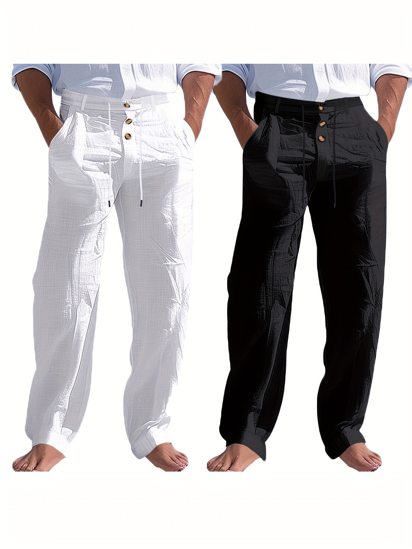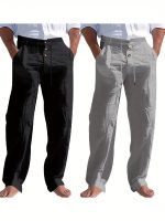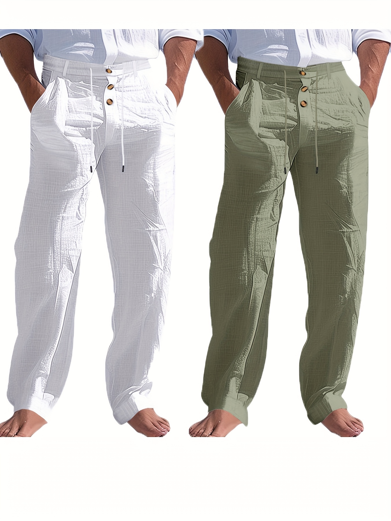 2pcs Men’s Lightweight Linen Casual Straight-Leg Pants