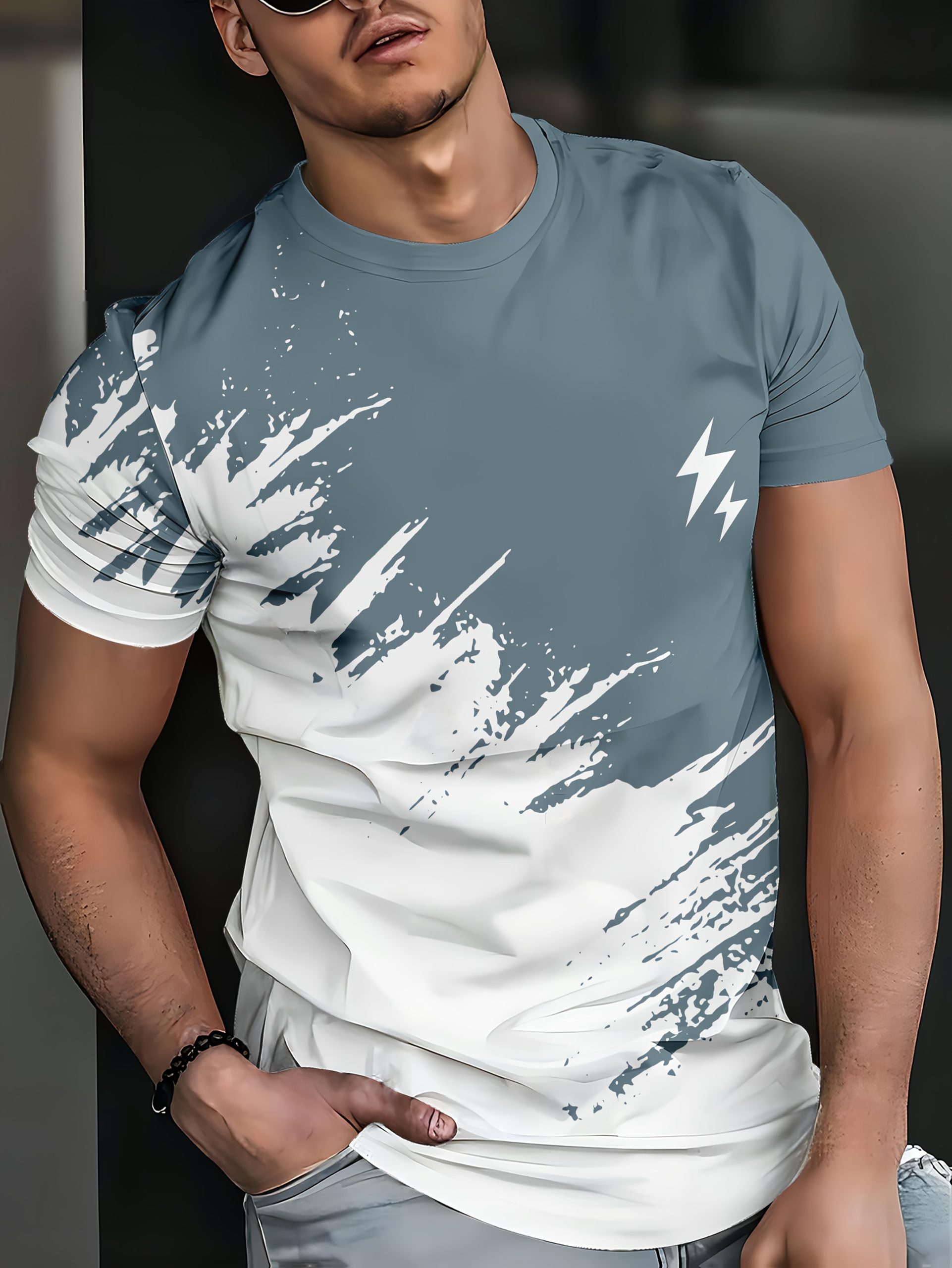 3D Graphic T-Shirt Black & White Men’s 3D Lightning Bolt Graphic T-Shirt | Breathable Casual Short Sleeve Tee, Regular Fit, Stylish Design, Streetwear Fashion, Durable Construction, Machine Washable