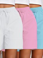 Home Women's Shorts 3pcs Women’S Solid Color Cargo Shorts – Breathable & Lightweight with Dual Pockets, Casual Springu002FSummer Fashion, Polyester Shorts