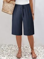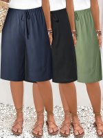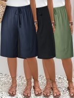 Home Women's Shorts 3pcs Women’S Summer Casual Straight-Leg High-Waisted Shorts – Solid Color, Faux Drawstring Detail, Polyester, Lightweight & Breathable for Beach or Vacatio