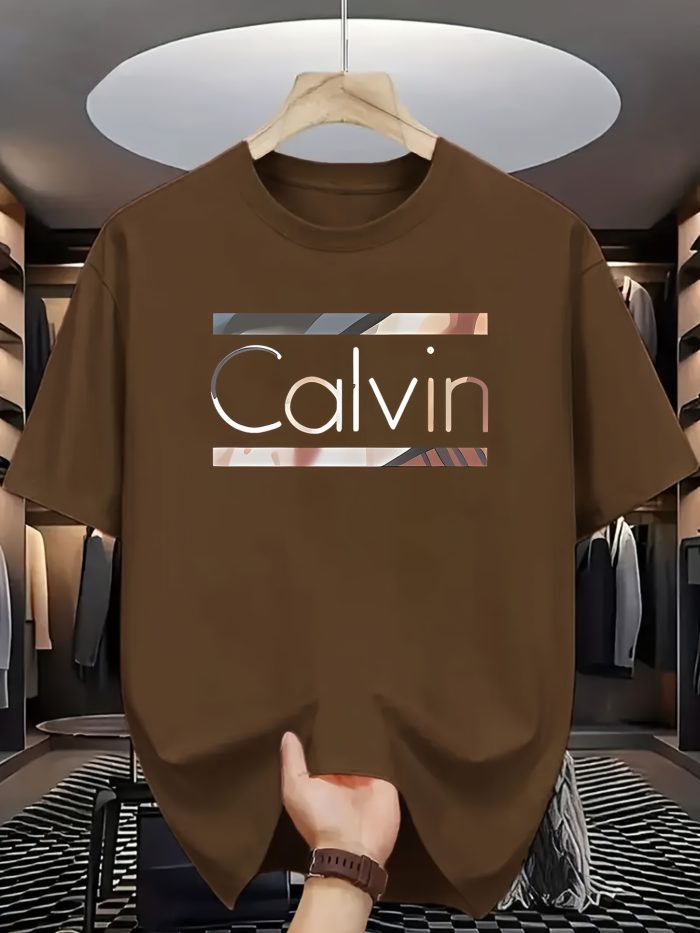 Home Men's T-Shirts Creative Style Letter Pattern, Men’S Casual T-Shirt, 100% Cotton Knitted Fabric, Short-Sleeved Shirt in Spring And Summer, Stylish And Versatile.