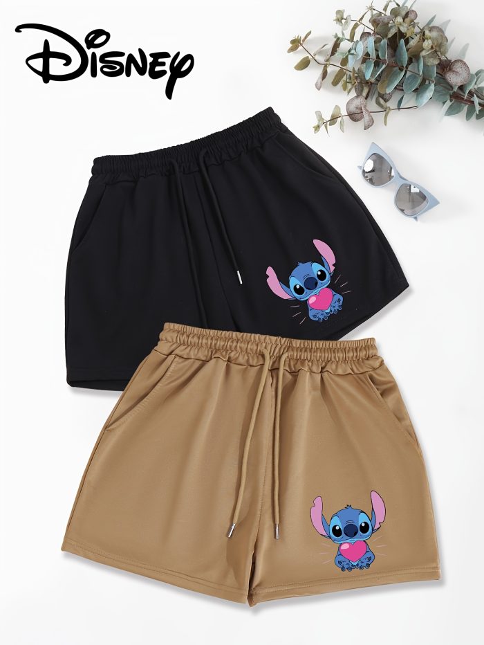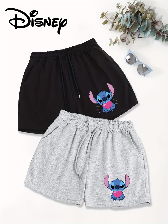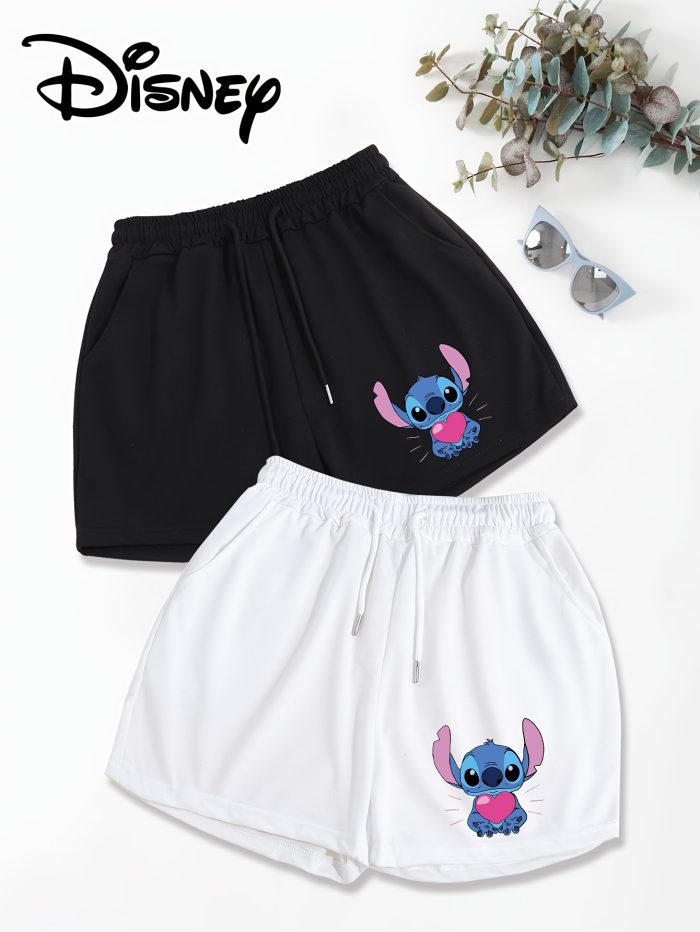 Disney 2-Pack Women’s Casual Shorts with Slant Pockets & Drawstring Waist – Loose Fit Cartoon Character Design, Black & White, Machine Washable for Spring & Summer, Comfortable Loosefit, Cute Shorts