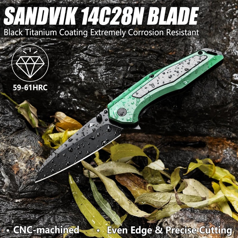 EDC Folding Pocket Knife with Sandvik 14C28N Steel Blade