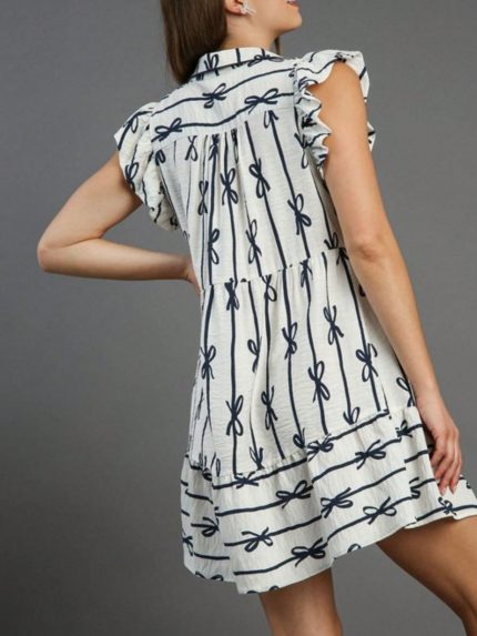Description Step out in style with the Ribbon Collared Mini A-Line Dress featuring Short Ruffled Sleeves. This chic dress combines