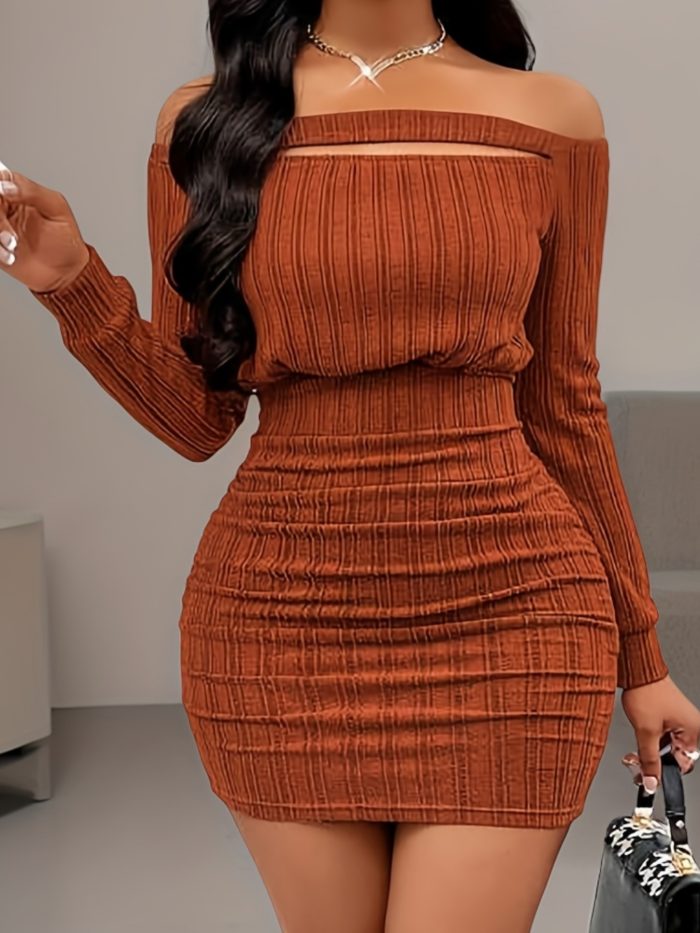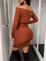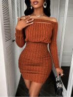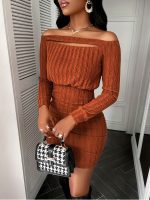 Home Women's Dresses Elegant Off-Shoulder Dress Elegant & Sexy Off-Shoulder Ribbed Bodycon Dress for Women