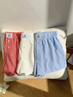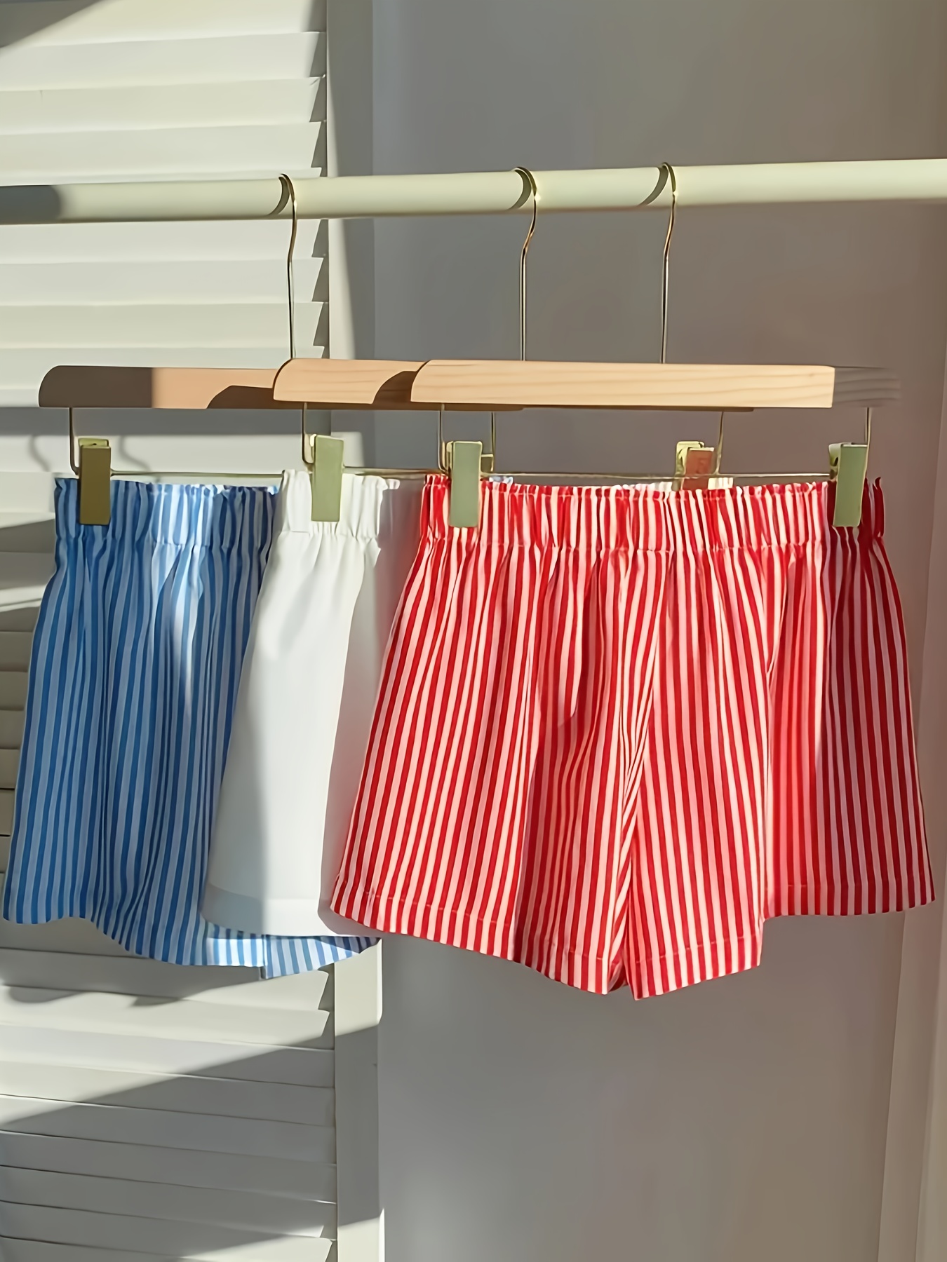 Home Women's Shorts Elegant Striped Shorts 3-Pack Women’s Elastic Waist Shorts Set – Striped Checkered Solid Color, All-Season, Side Stripe Detail – 97% Polyester 3% Spandex, Woven Fabric, 150 gsm, Button Design