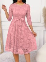 Be the first to review “Elegant Women’S Dress Lace Round Collar Seven-minute Sleeve Lace Slim Pink Dress GNLBT178-1” Cancel reply