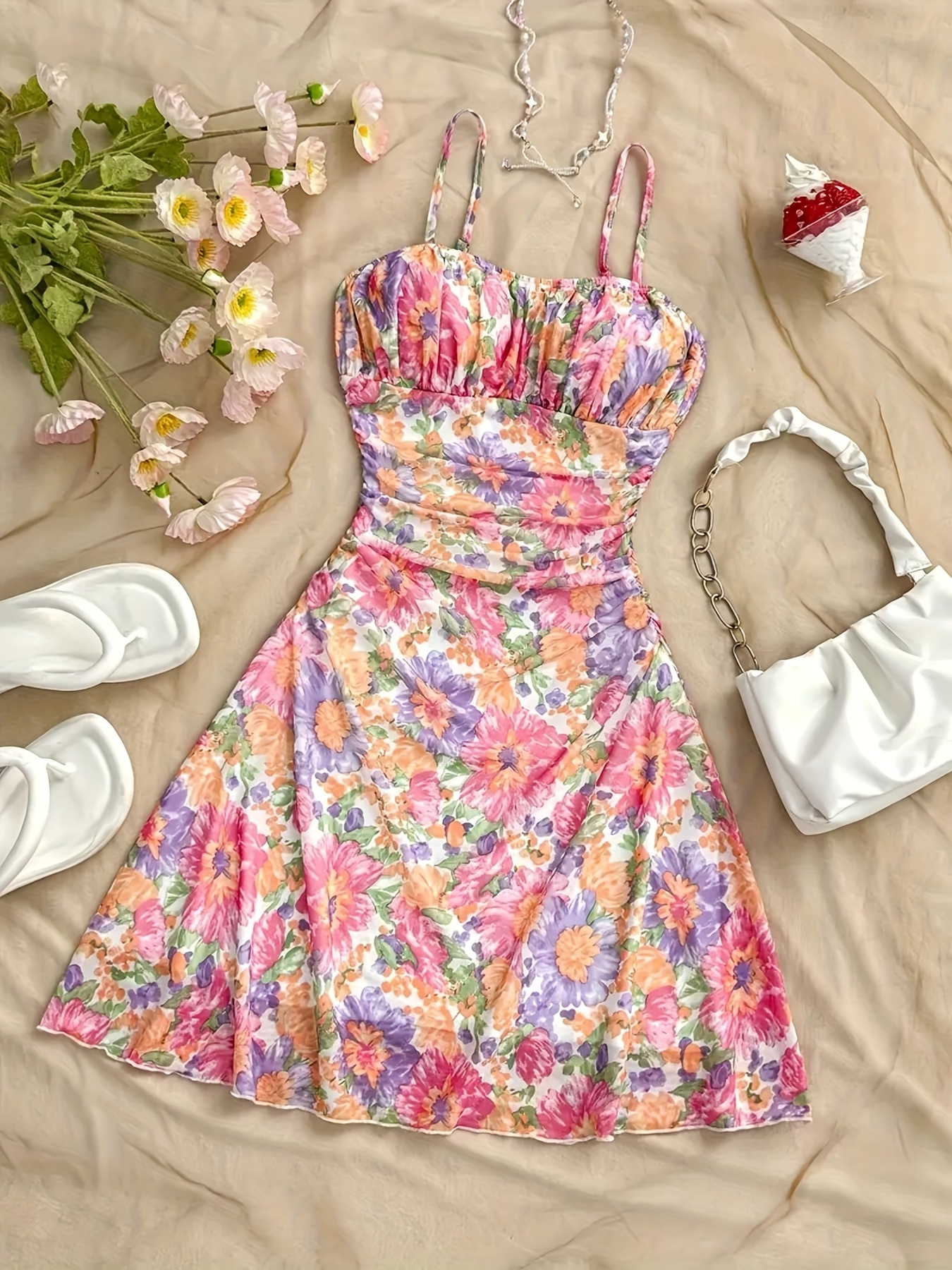 Home Women's Dresses Fashionable Floral Dress Elegant Floral Print Halter Dress – Women’s Fashionable Suitable for All Seasons