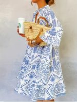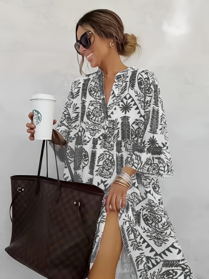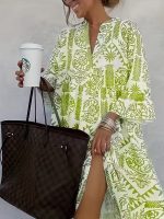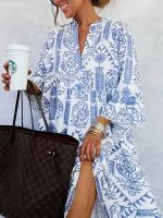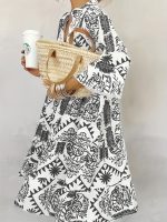 Home Women's Dresses Floral Maxi Dress Lightweight Breathable Women’s V-Neck Floral Print Maxi Dress | A-Line Flared Hem Machine Washable for Spring Summer Fall Casual & Formal Occasions, Versatile Outfit, Middle Eastern Style, Intricate Patterns