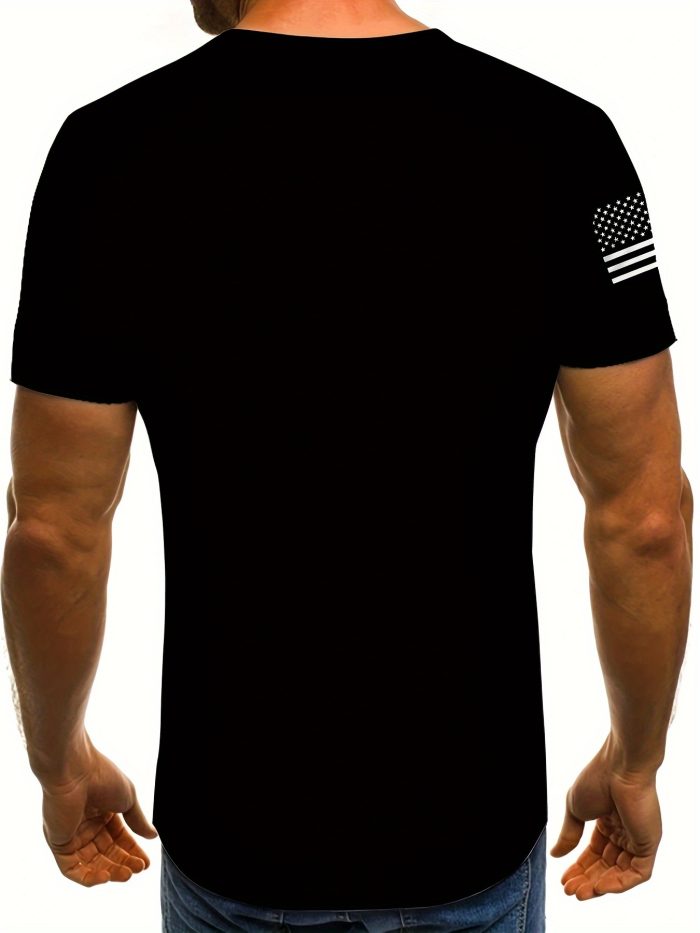 Men’s 3D American Flag Print T-Shirt – Retro Patriotic Crew Neck Short Sleeve Top, 100% Polyester Knit, Machine Washable, All-Season Casual Wear, Bold Graphic Design, American Flag Shirt, Comfortable Fit, Durable Fabric