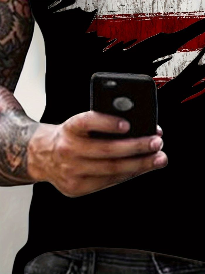 Men's Patriotic 3D Star Print T-Shirt - Distressed American Flag Design, Casual Short Sleeve Summer Tee, Lightweight Polyester Blend, Round Neck, Machine Washable, Outdoor Clothing | American Flag Tshirt | Stretchable Fabric