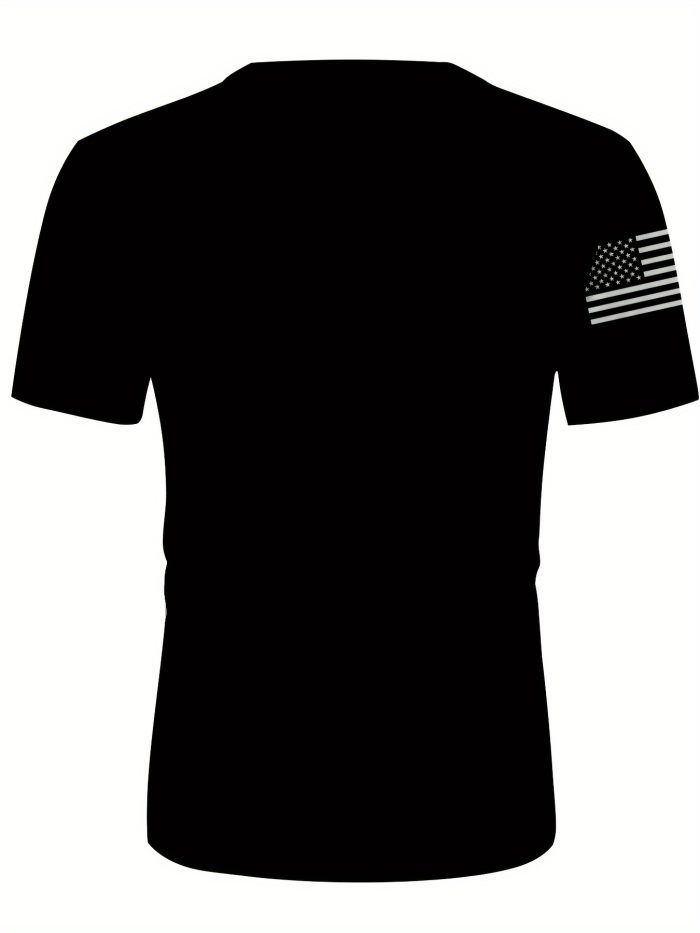 Men's Patriotic 3D Star Print T-Shirt - Distressed American Flag Design, Casual Short Sleeve Summer Tee, Lightweight Polyester Blend, Round Neck, Machine Washable, Outdoor Clothing | American Flag Tshirt | Stretchable Fabric $5.33