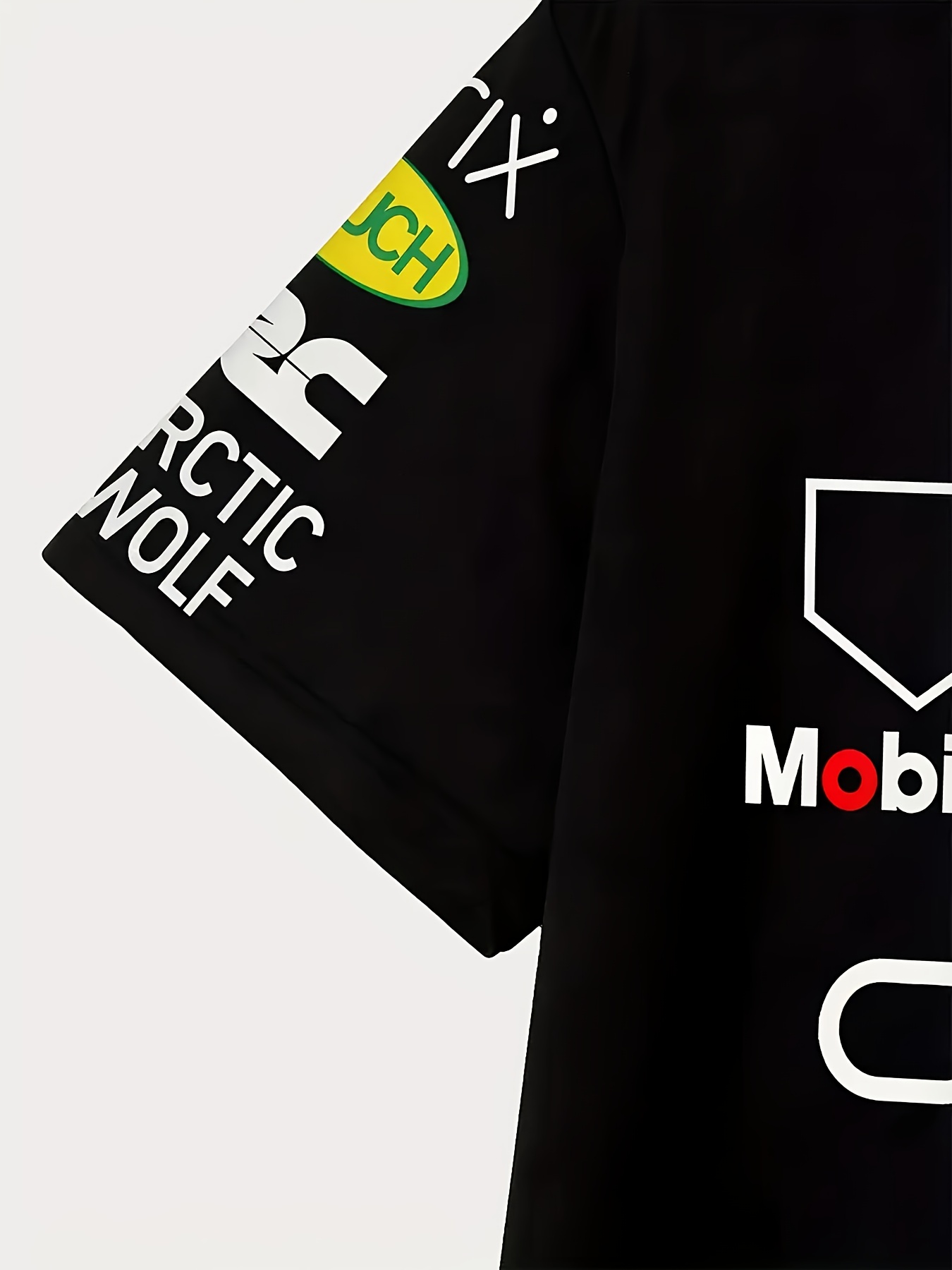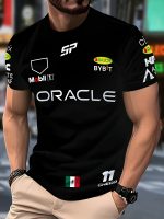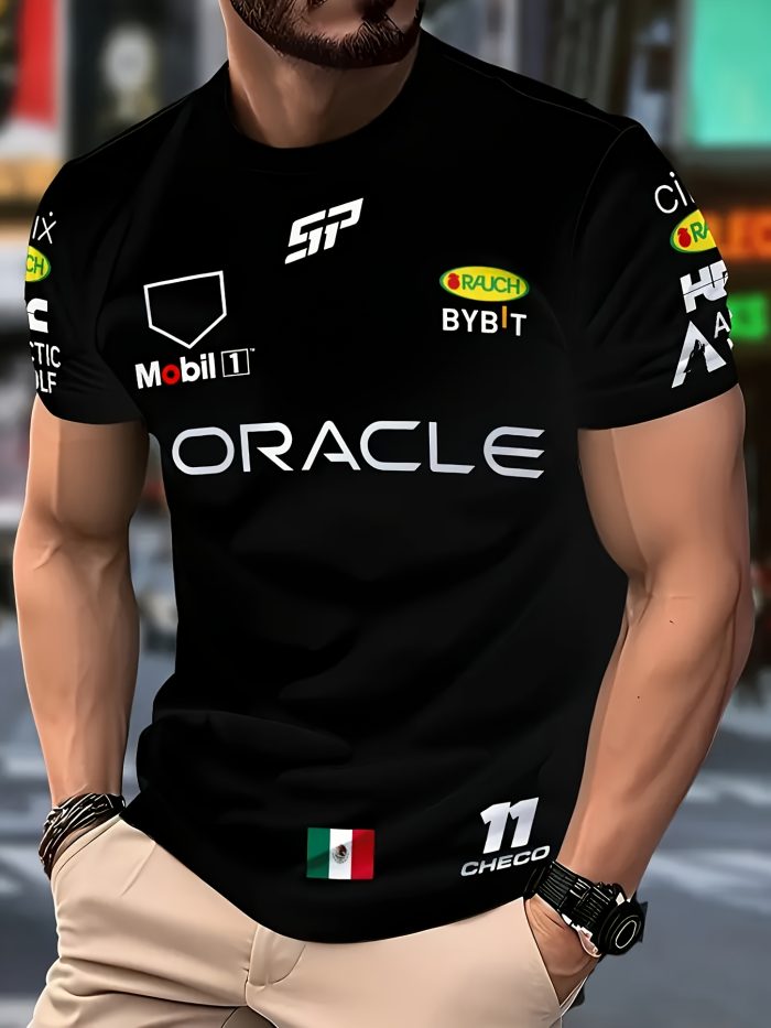 Men’s Checo Perez No. 11 Racing Graphic T-Shirt – Full-Body Print Breathable Short Sleeve Tee, Regular Fit Summer Casual Top with Sponsor Logos (Oracle, BWT,), Motorsport Fan Apparel, Sporty Casual Style, Machine Washable Fabric