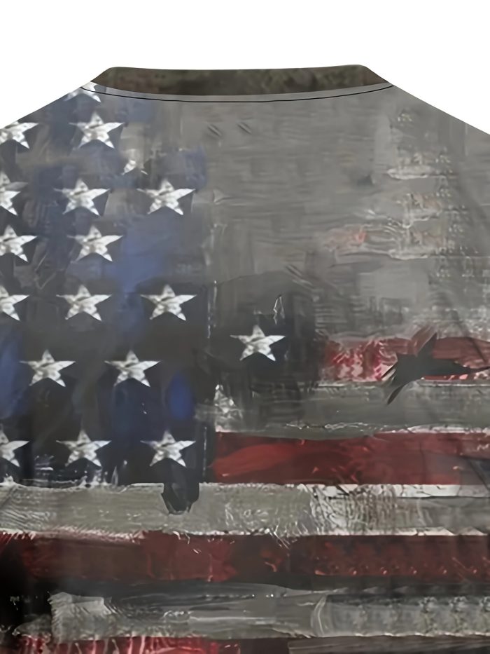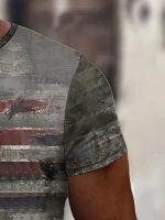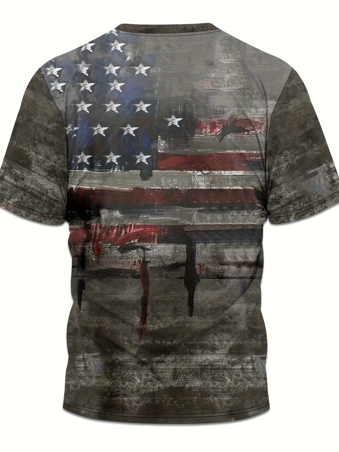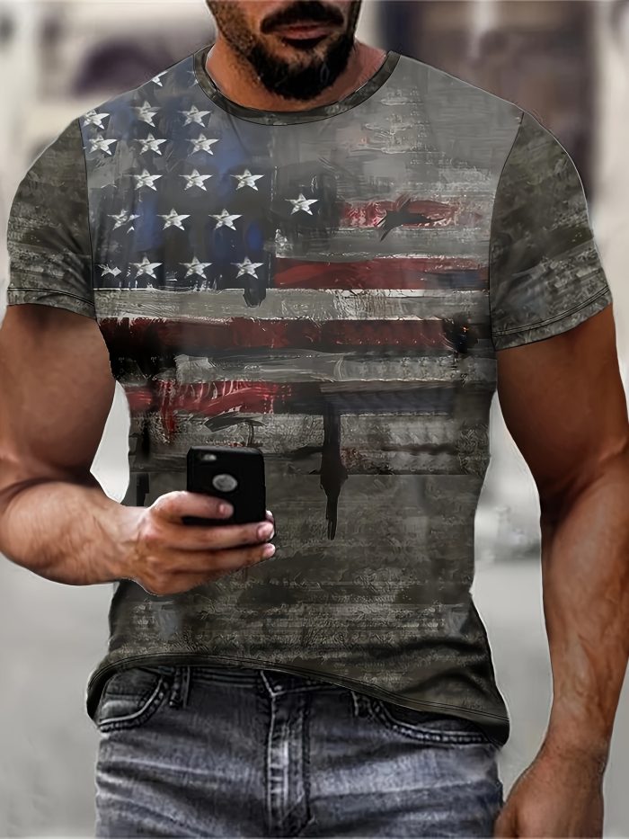 Men's 3D American Flag Print T-Shirt - Retro Patriotic Crew Neck Short Sleeve Top, 100% Polyester Knit, Machine Washable, All-Season Casual Wear, Bold Graphic Design, American Flag Shirt, Comfortable Fit, Durable Fabric $5.78