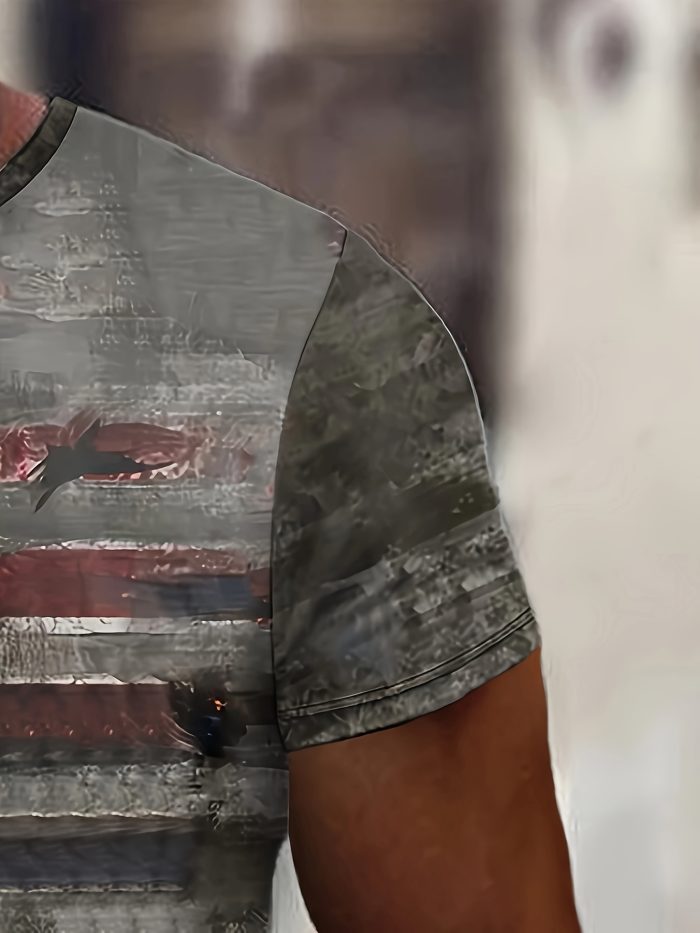 Home Men's T-Shirts Men’s Patriotic 3D Star Print T-Shirt – Distressed American Flag Design, Casual Short Sleeve Summer Tee, Lightweight Polyester Blend, Round Neck, Machine Washable, Outdoor Clothing | American Flag Tshirt | Stretchable Fabric