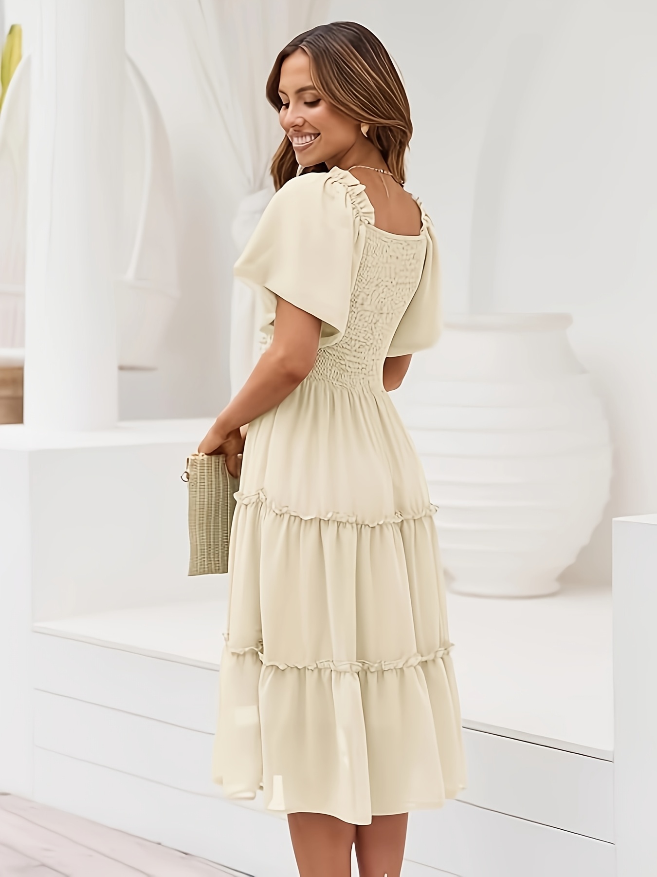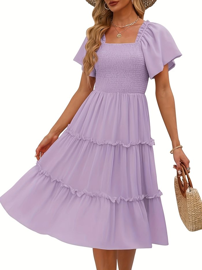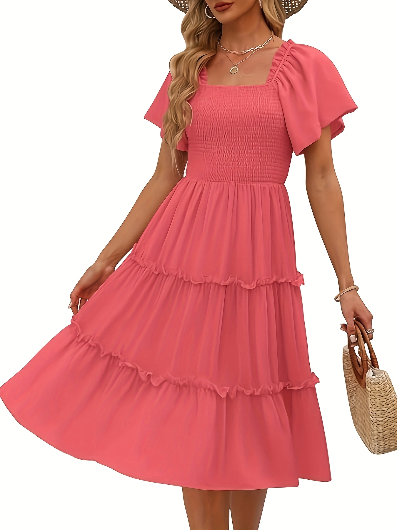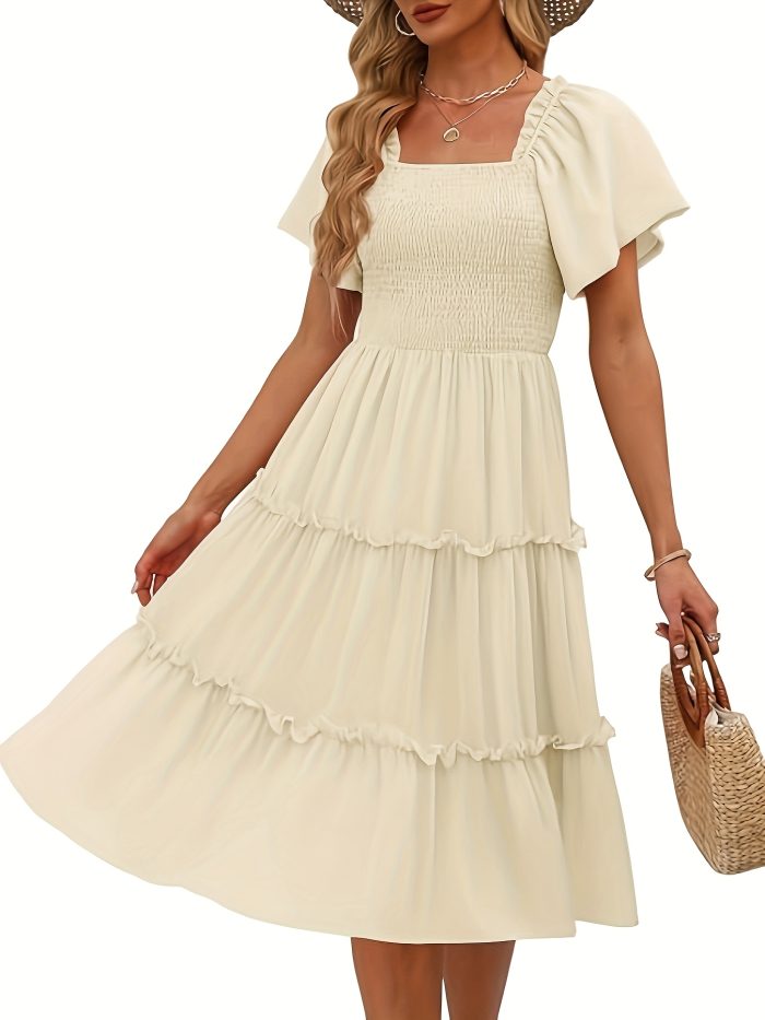 Mint Green Short Sleeve Dress Mint Green Lightweight Women’s Summer Casual Short Sleeve Square Neck Dress | A-Line Knee-Length with Pleated Skirt & Smocked Detailing, Machine Washable for Beach Outings & Casual Gatherings, Smooth Texture Fabric