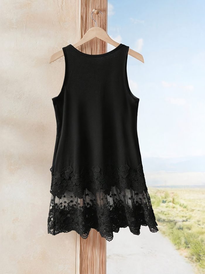 Be the first to review “Women’S Casual Summer Tank Top with Contrast Lace Detail – Sleeveless, Round Neck, Black and White Ruffle Hem, Polyester Fabric, Perfect for Casual Attire, Summer Tank Tops” Cancel reply