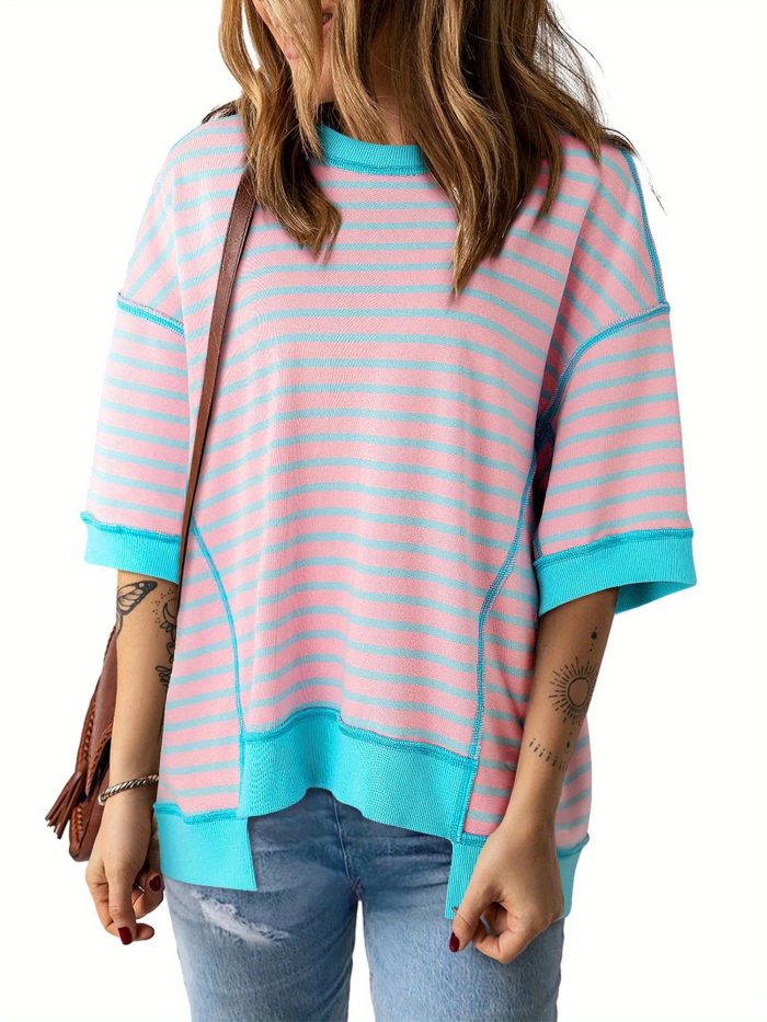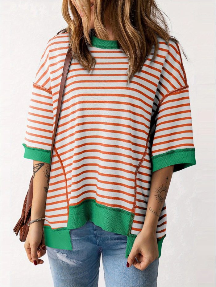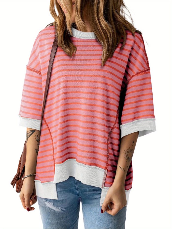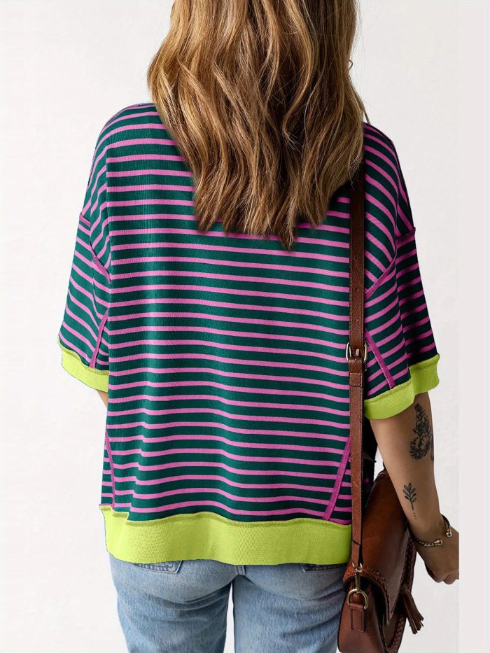 Women’S Colorful Striped Short Sleeve T-Shirt