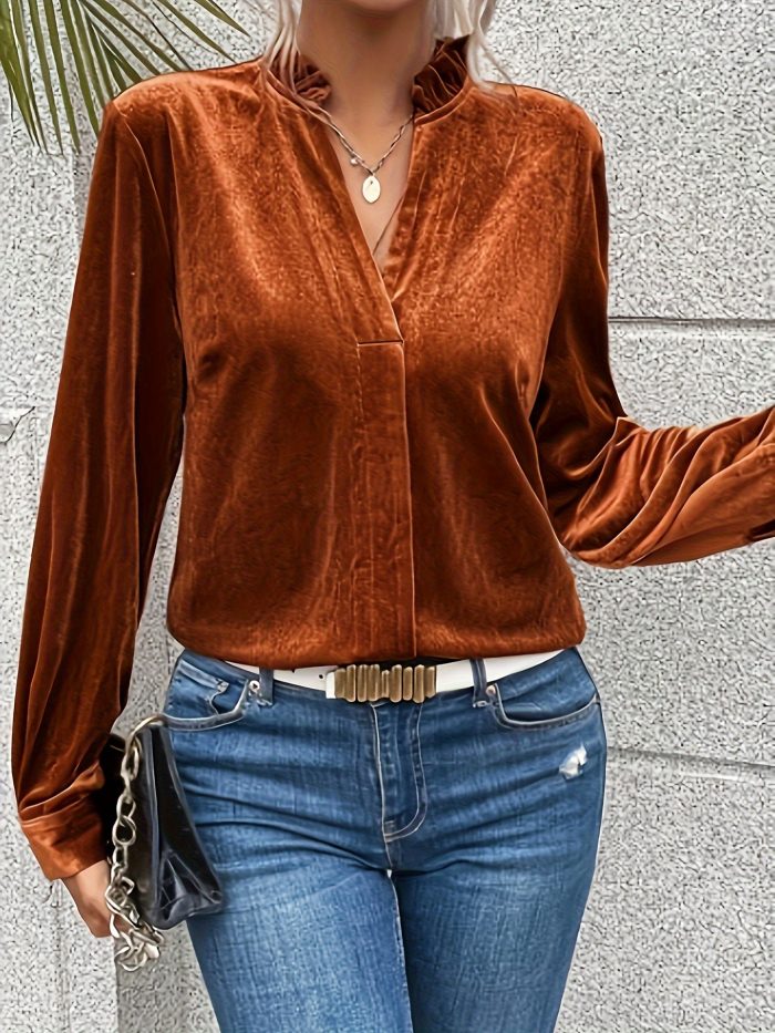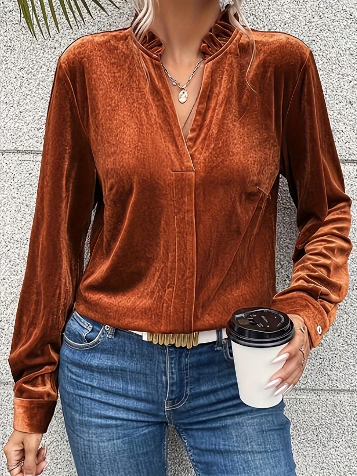 Home Women's T-Shirt Women’s Elegant V-Neck Long Sleeve Shirt Jacket