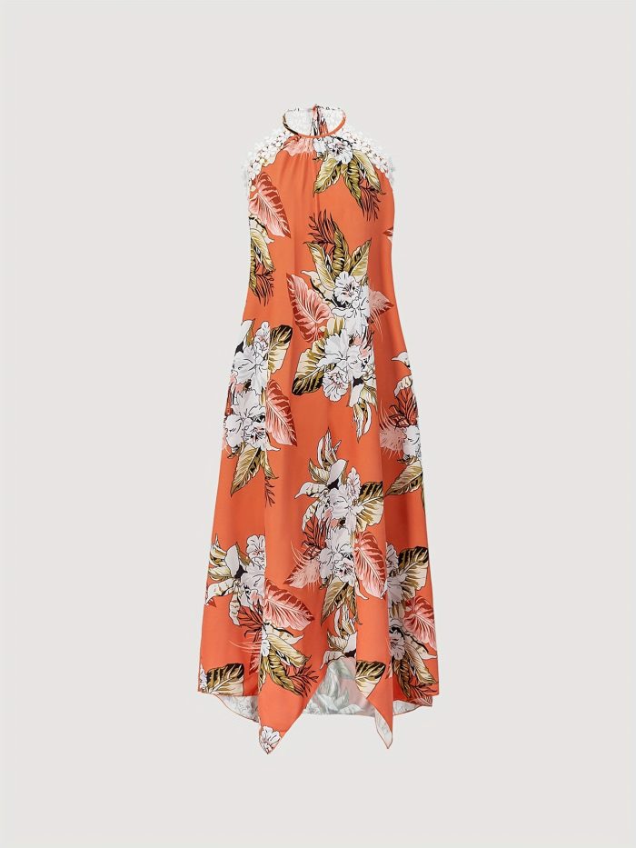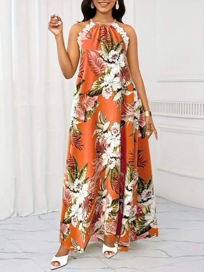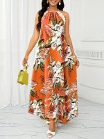 Home Women's Dresses Women’s Floral Print Resort-style Casual Lace-up Sleeveless Dress with Spaghetti Straps