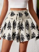 Home Women's Shorts Women’s Geometric Print Beach Shorts – Elastic Waist with Adjustable Drawstring, Lightweight Comfort for Summer, Spring & Fall | Machine Washable Casual Vacation Shorts, Summer Beachwear, Nontransparent Fabric