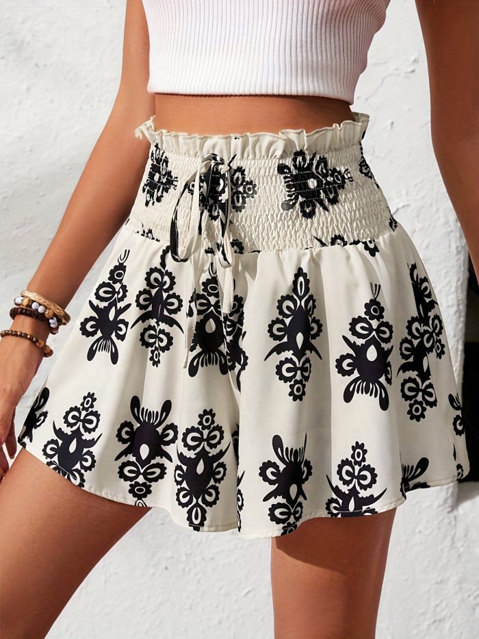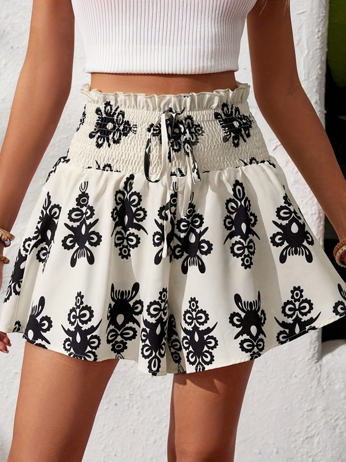 Women’s Geometric Print Beach Shorts – Elastic Waist with Adjustable Drawstring, Lightweight Comfort for Summer, Spring & Fall | Machine Washable Casual Vacation Shorts, Summer Beachwear, Nontransparent Fabric