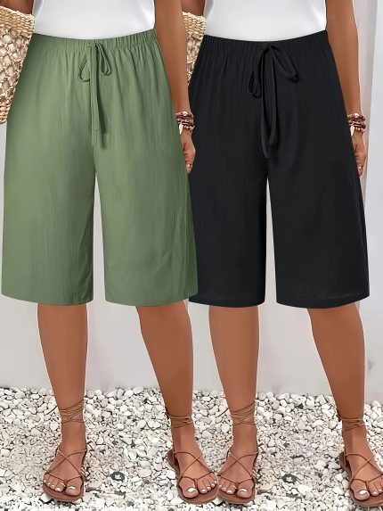 S3300 Women’S High-Waisted Stretchy Ankle-Length Shorts with Adjustable Black Drawstring Waist – Sexy Solid Color Casual Summer Shorts for Casual Attire, High Waisted Shorts