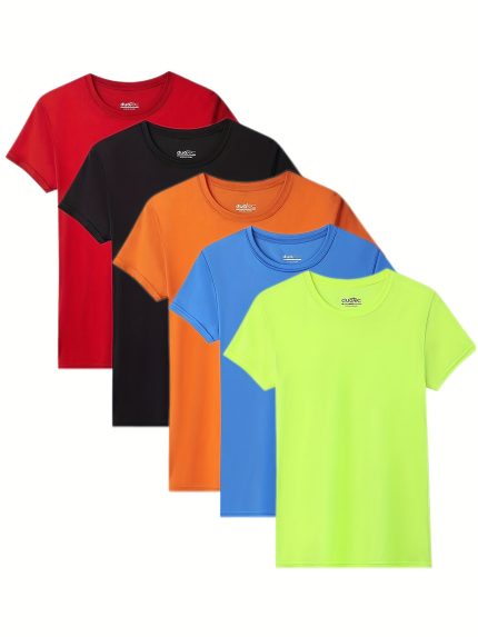 5pcs Women’s Quick Dry Crew Neck Short Sleeve T-Shirt