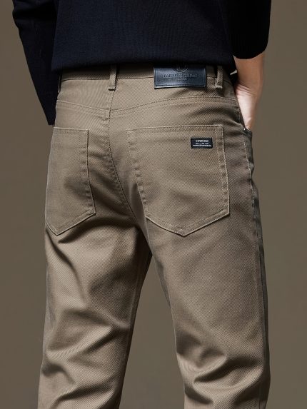 Warm Thick Dress Pants, Men’s Formal Solid Color Stretch Dress Pants For Fall Winter Business