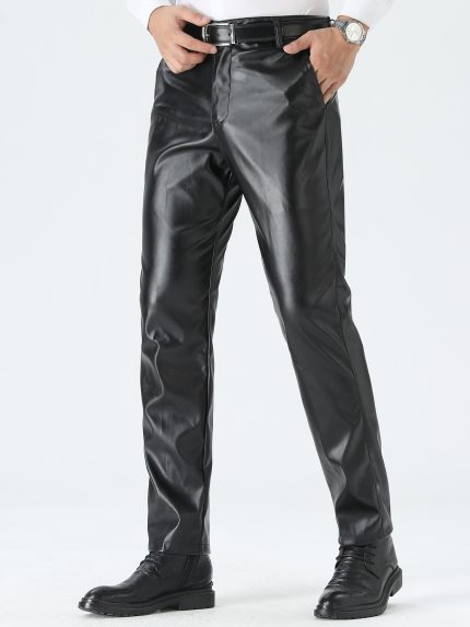Men’S Slim-Fit Straight-Leg Faux Leather Pants
