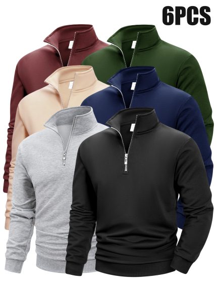 6pcs Men’s Full-Zip Stand Collar Sweatshirts
